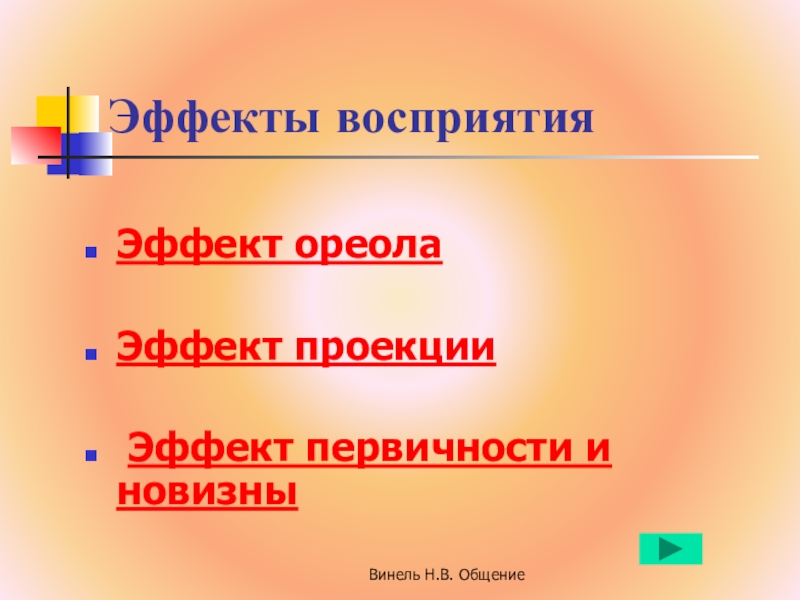 Винель Н.В. ОбщениеЭффекты восприятияЭффект ореолаЭффект проекции Эффект первичности и новизны
