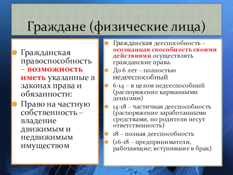 14-18 – частичная дееспособность (распоряжение заработанными средствами, но родители несут ответственность)