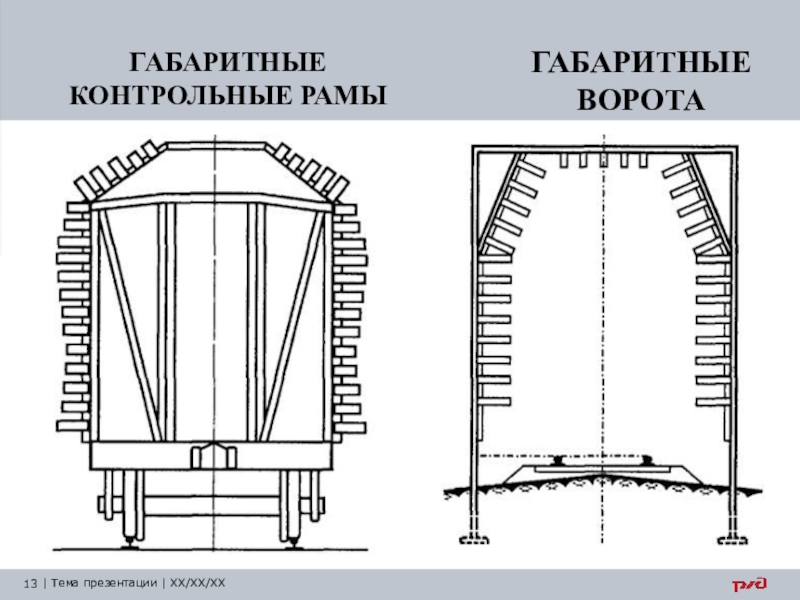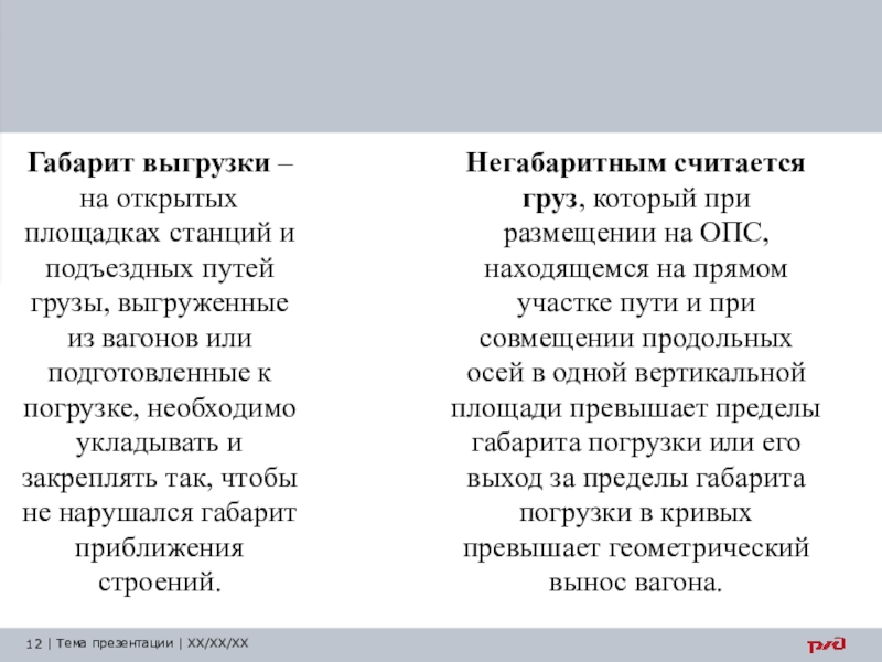 Слайд 12Габарит выгрузки – на открытых площадках станций и подъездных путей грузы,