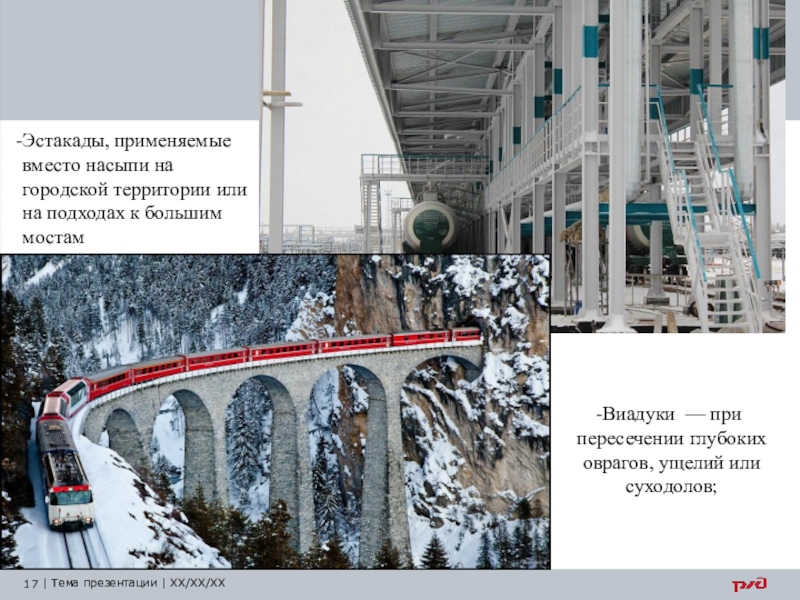 Слайд 17Эстакады, применяемые вместо насыпи на городской территории или на подходах к