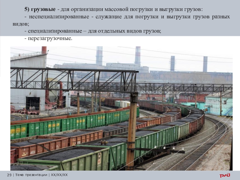 Слайд 295) грузовые - для организации массовой погрузки и выгрузки грузов: