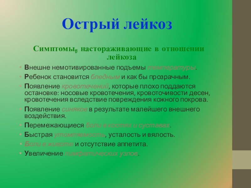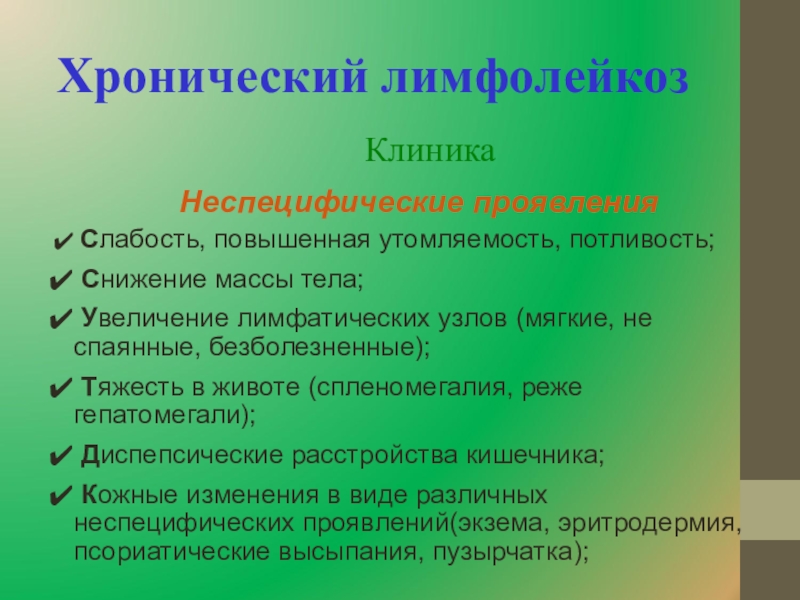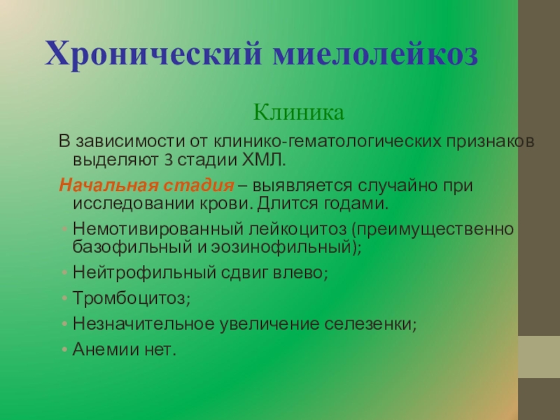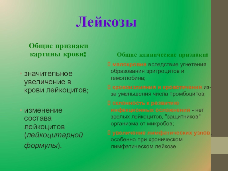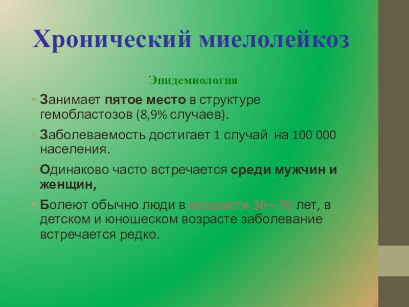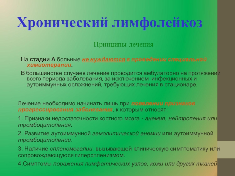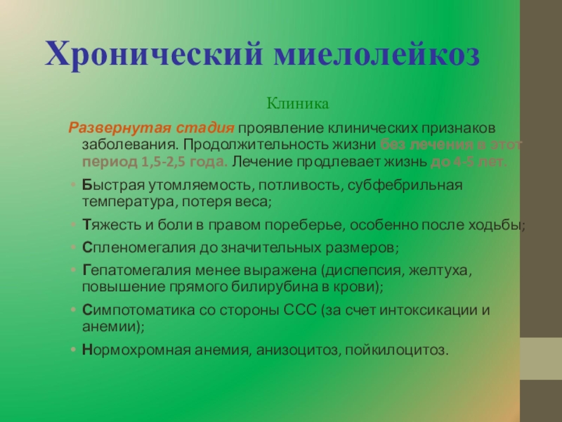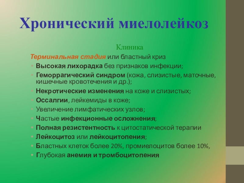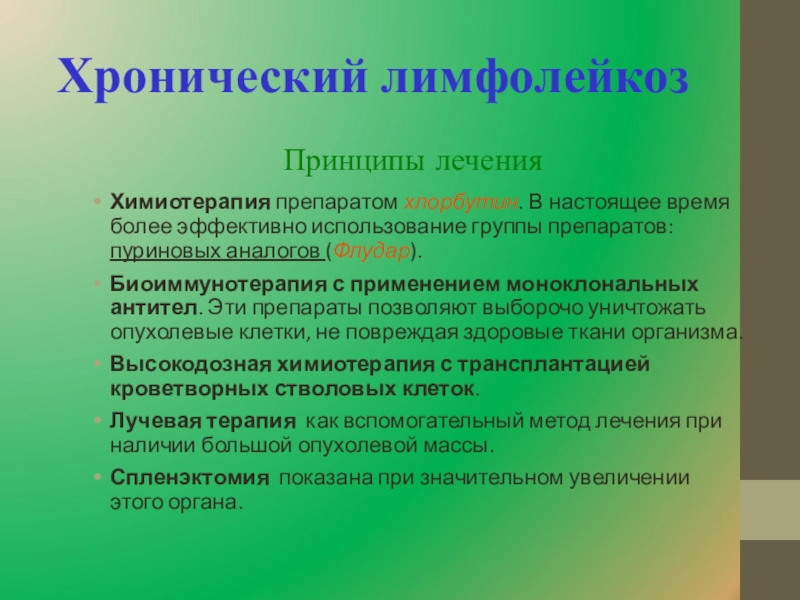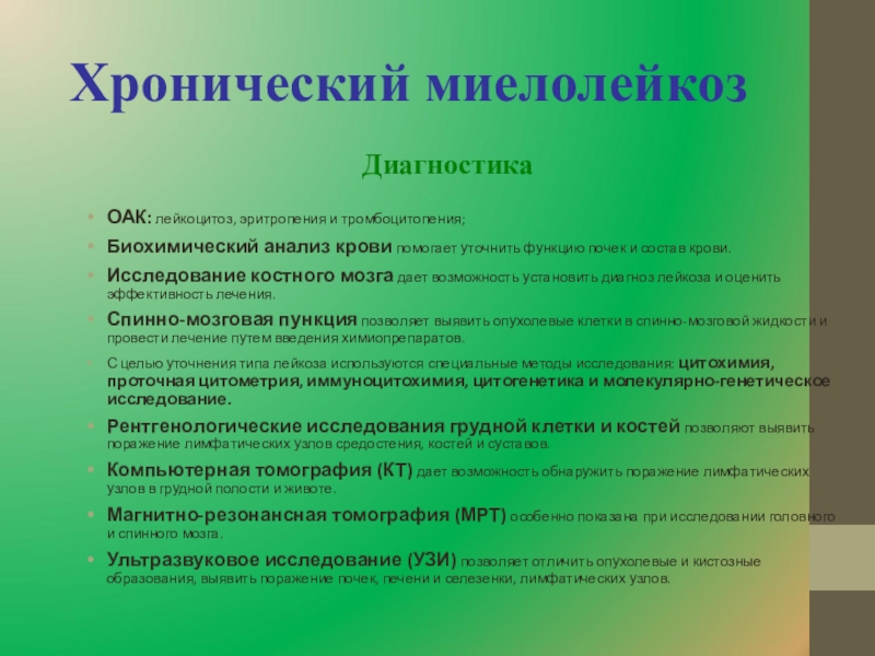 Признаки хронического миелолейкоза, лимфолейкоза; принципы диагностики и лечения лейкозов;