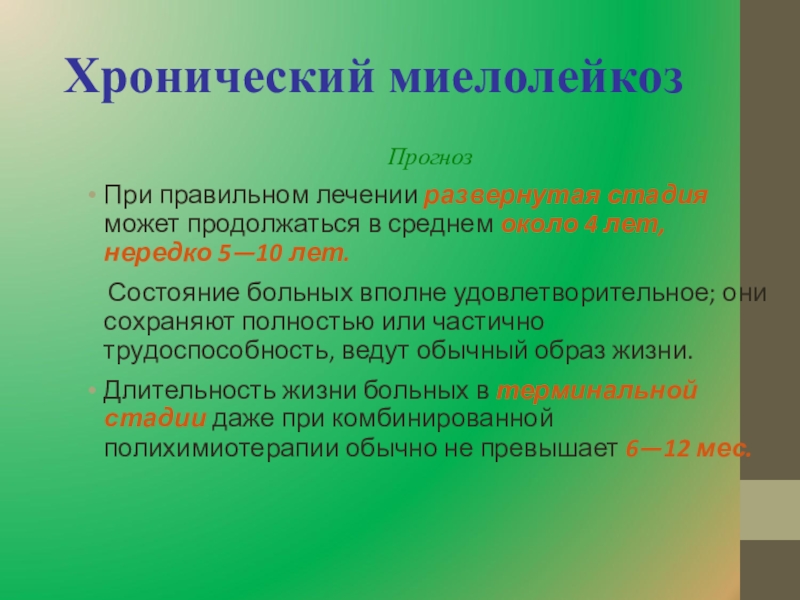 Длительность жизни больных в терминальной стадии даже при комбинированной полихимиотерапии обычно не превышает 6—12 мес.