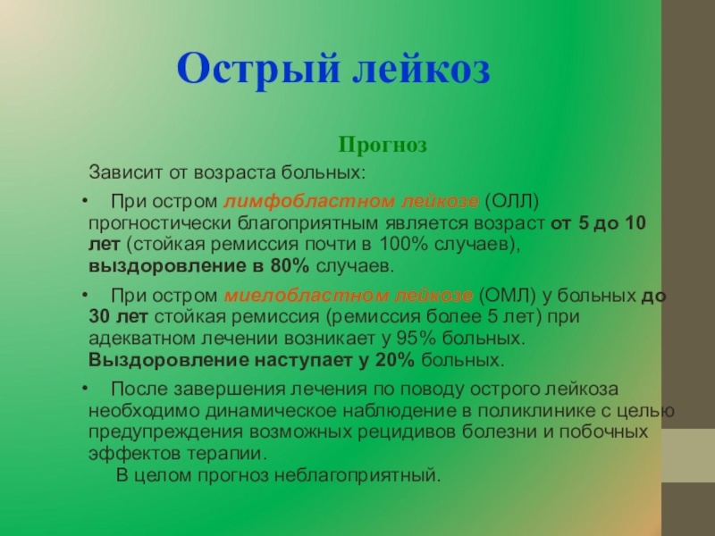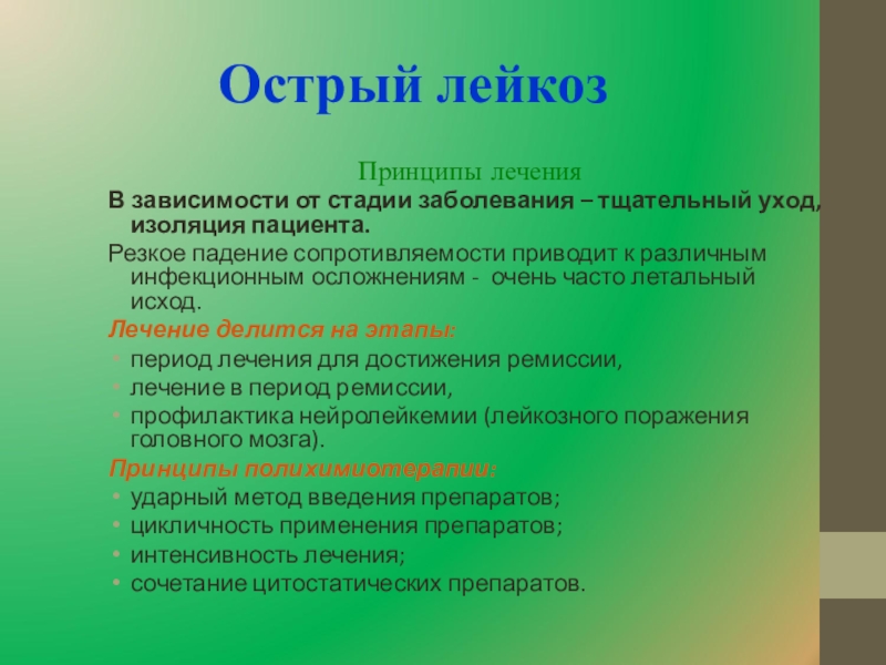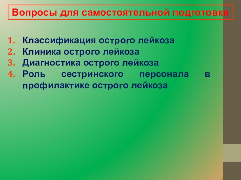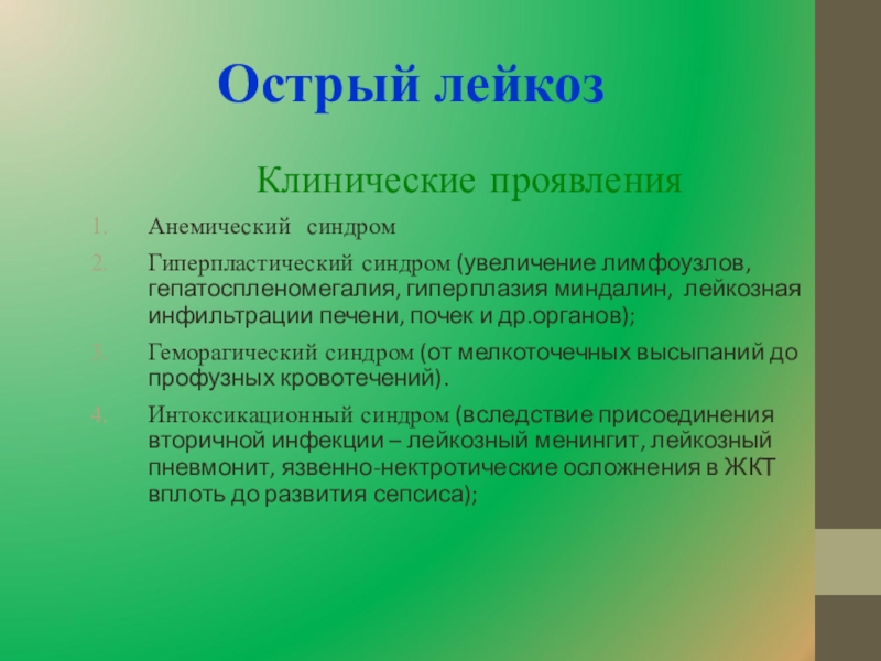 Острый лейкоз. Классификация, клиника, диагностика, принципы лечения, инфекционные и язвенно-некротические осложнения. Роль сестринского персонала в профилактике этих осложнений.