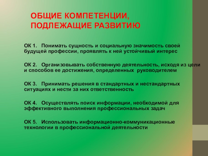 Слайд 5ОБЩИЕ КОМПЕТЕНЦИИ,