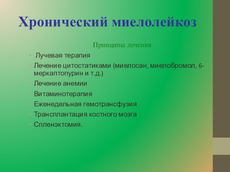 Лечение цитостатиками (миелосан, миелобромол, 6-меркаптопурин и