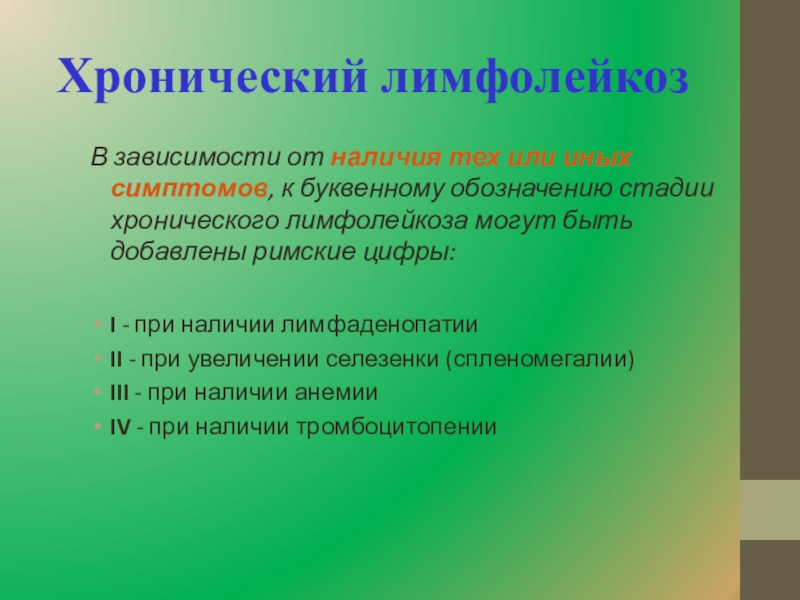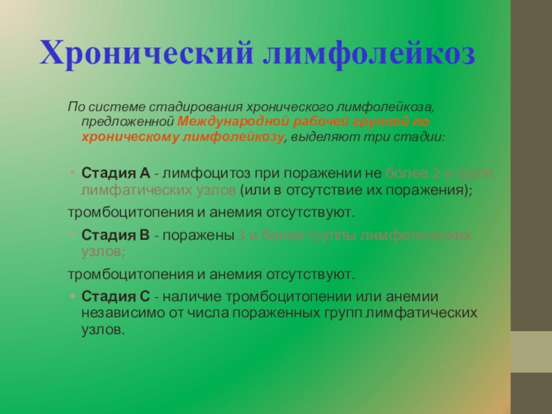 Хронический лимфолейкоз. Клиника (по стадиям течения), диагностика, принципы лечения, сестринский уход.