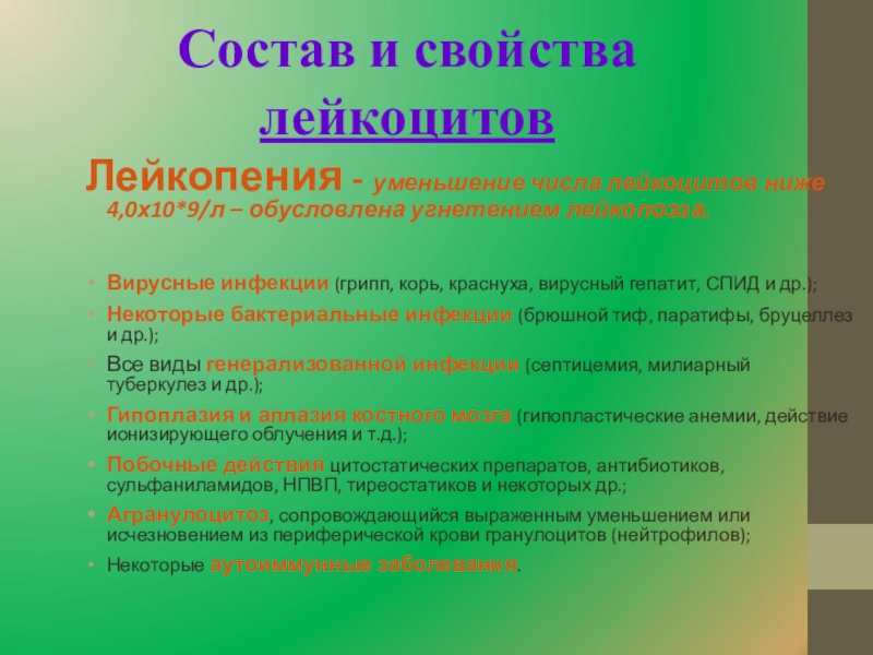 Определние понятий: «лимфопения», «лимфоцитоз», «нейтрофилия», «нейтропения», «агранулоцитоз»;