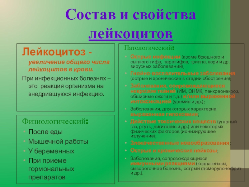 Определение понятия «белая кровь», состав и свойства лейкоцитов, количественные изменения