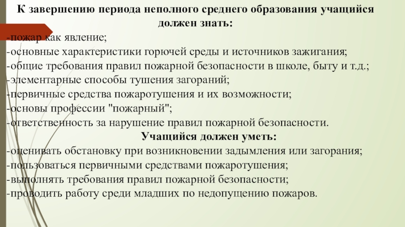Слайд 11К завершению периода неполного среднего образования учащийся должен знать: