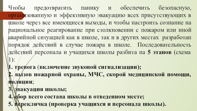 Слайд 18Чтобы предотвратить панику и обеспечить безопасную, организованную и эффективную эвакуацию всех