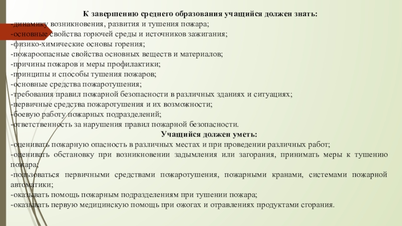 Слайд 16 К завершению среднего образования учащийся должен знать: