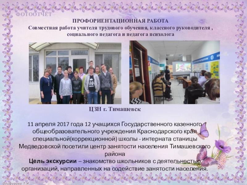 11 апреля 2017 года 12 учащихся Государственного казенного общеобразовательного учреждения Краснодарского края специальной(коррекционной) школы - интерната станицы Медведовской посетили центр занятости населения Тимашевского района