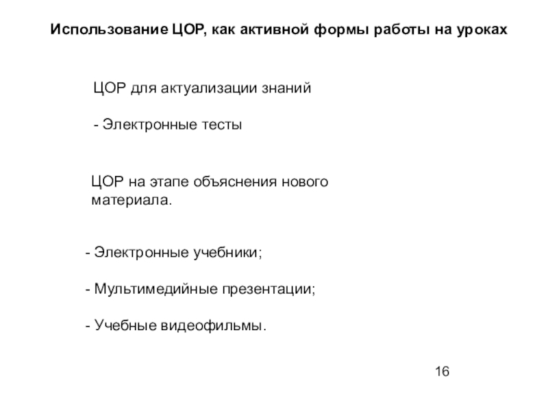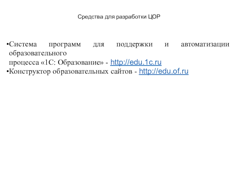 - ЦОРы – как отдельные «цифровые содержательные модули», поддерживающие изучение какого-либо конкретного фрагмента соответствующей учебной темы, жестко привязанные к конкретному учебнику по соответствующему предмету и сопровождаемые соответствующей методической поддержкой;