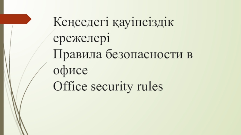 Слайд 1Кеңседегі қауіпсіздік ережелері Правила безопасности в офисе Оffice security rules