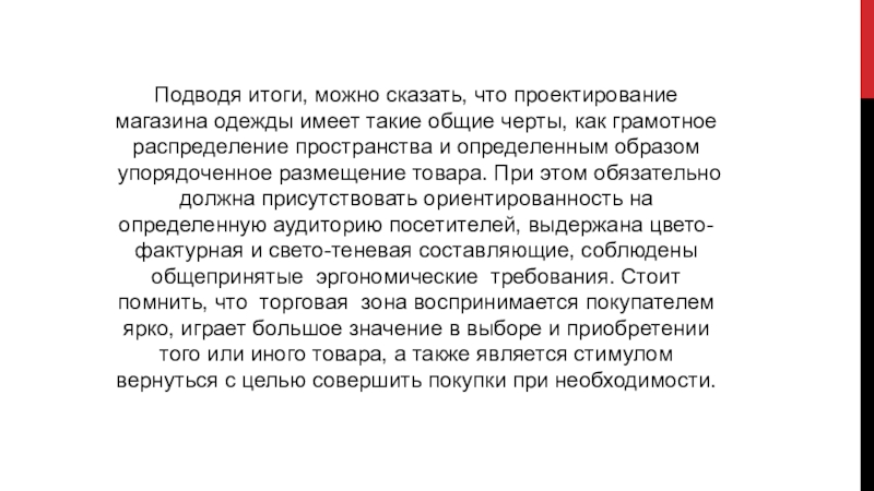 Слайд 16Подводя итоги, можно сказать, что проектирование магазина одежды имеет такие общие