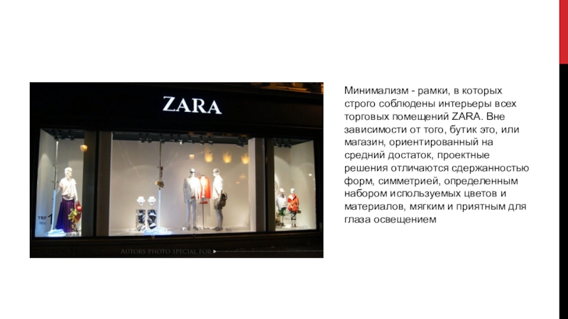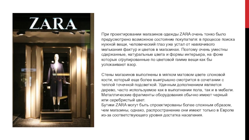Слайд 11При проектировании магазинов одежды ZARA очень тонко было предусмотрено возможное состояние