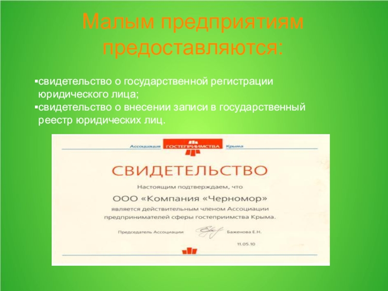 Слайд 9Документы, подтверждающие регистрацию малого предприятия
