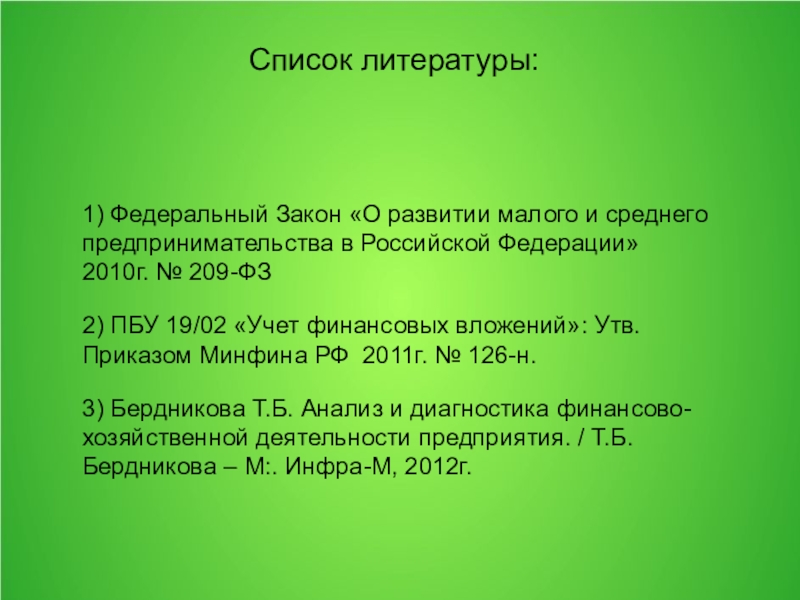 1) Федеральный Закон «О развитии малого и среднего предпринимательства в Российской Федерации» 2010г. № 209-ФЗ