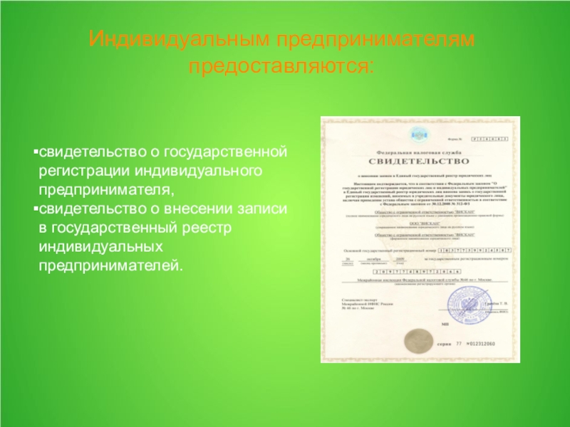 свидетельство о государственной регистрации индивидуального предпринимателя,
