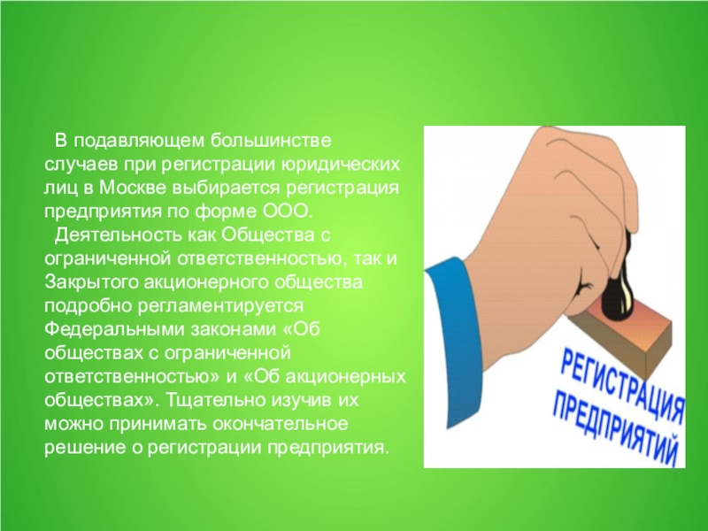 Слайд 6 В подавляющем большинстве случаев при регистрации юридических лиц в Москве