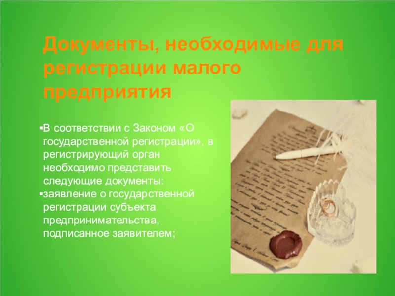 Слайд 3Документы, необходимые для регистрации малого предприятия