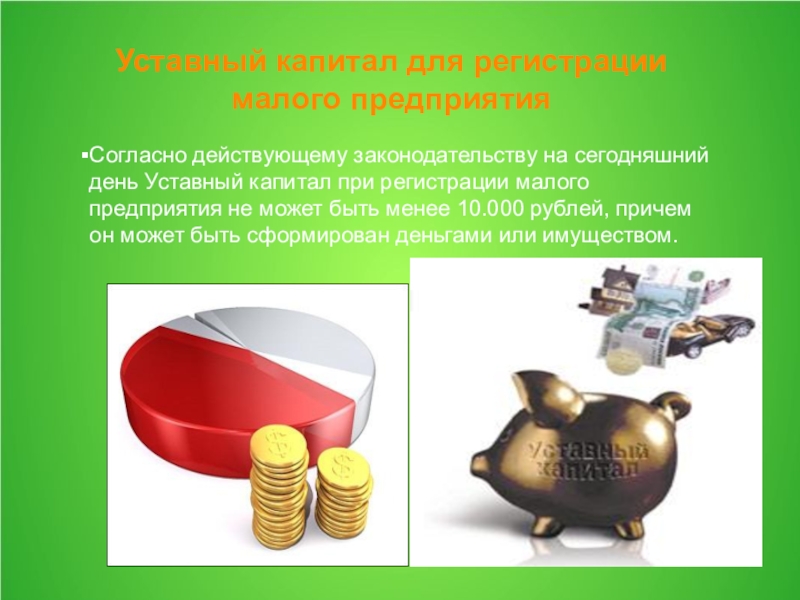 Слайд 15Уставный капитал для регистрации малого предприятия