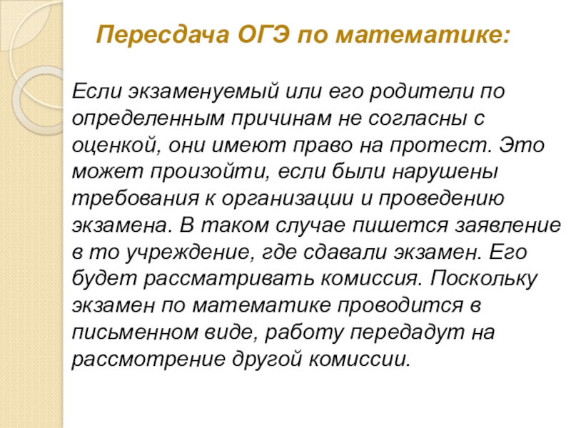 не согласны с оценкой, они имеют право на протест. Это может произойти, если были нарушены требования к организации и проведению экзамена. В таком случае пишется заявление в то учреждение, где сдавали экзамен. Его будет рассматривать комиссия. Поскольку экзамен по математике проводится в письменном виде, работу передадут на рассмотрение другой комиссии.