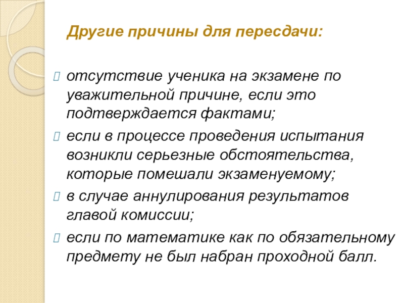 если в процессе проведения испытания возникли серьезные обстоятельства, которые помешали экзаменуемому;
