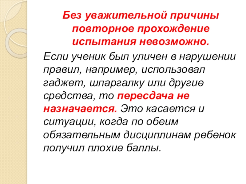 в нарушении правил, например, использовал гаджет, шпаргалку или другие средства, то пересдача не назначается. Это касается и ситуации, когда по обеим обязательным дисциплинам ребенок получил плохие баллы.