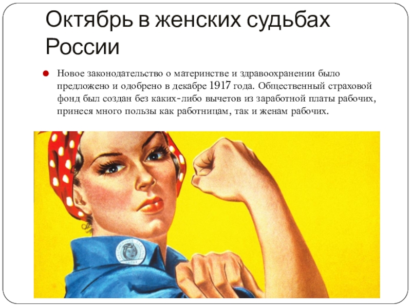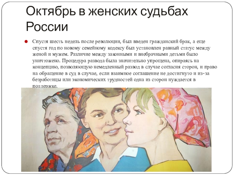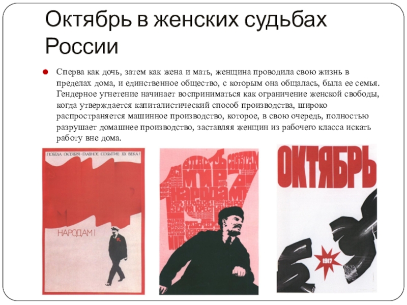 Слайд 13Октябрь в женских судьбах России