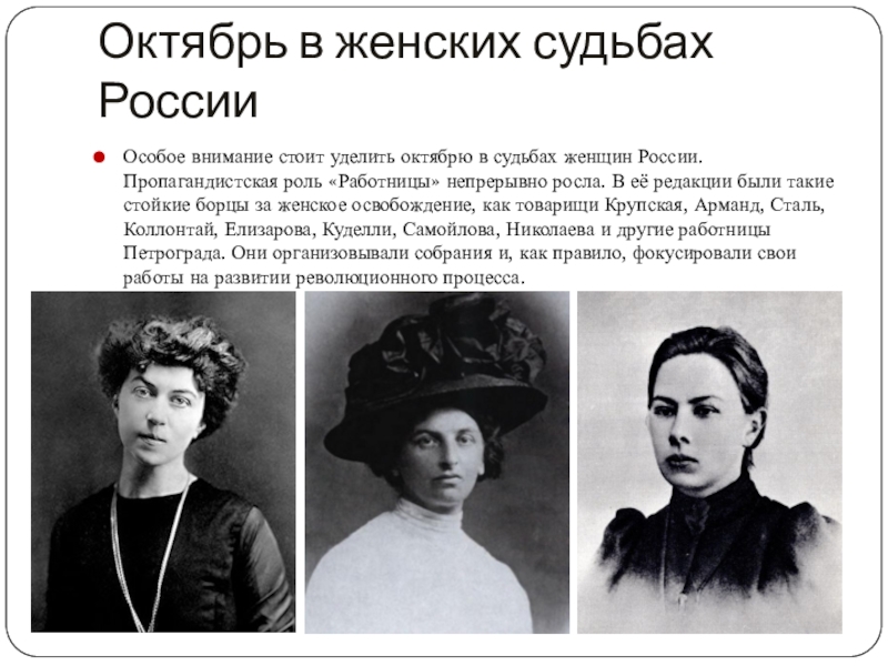 Слайд 6Октябрь в женских судьбах России