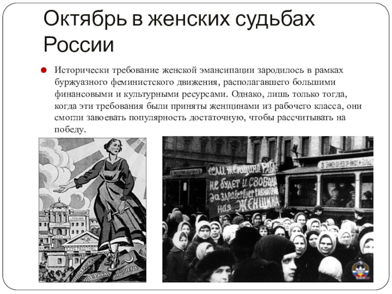 Слайд 9Октябрь в женских судьбах России