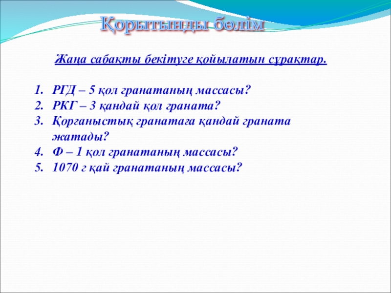 Слайд 16Жаңа сабақты бекітуге қойылатын сұрақтар.