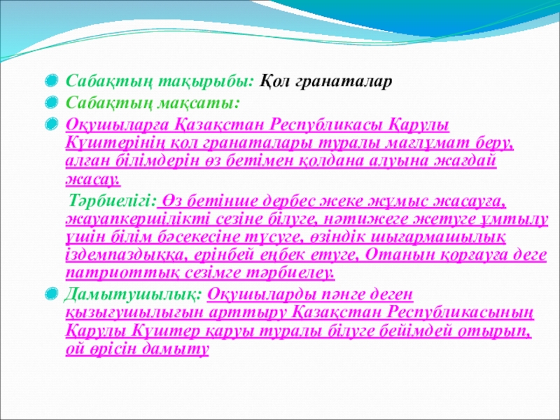 Слайд 1Сабақтың тақырыбы: Қол гранаталар