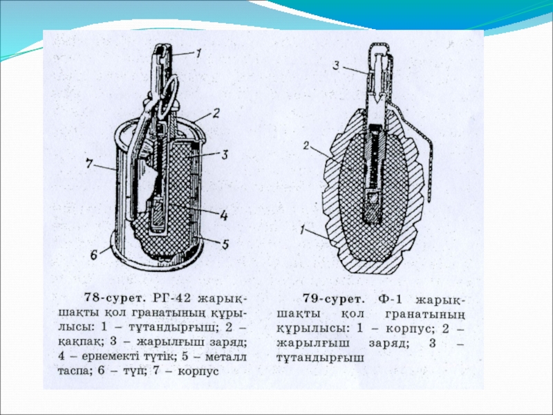 Слайд 7Қол гранаттары талай ғасырлар бойына армияның қаруы болды. Оларды жауынгерлер біздің