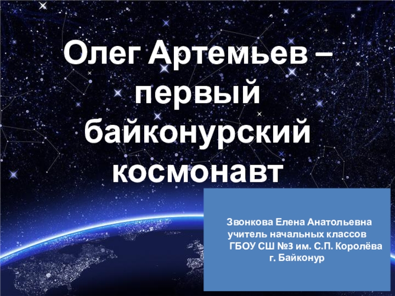 Слайд 1Олег Артемьев – первый байконурский космонавт