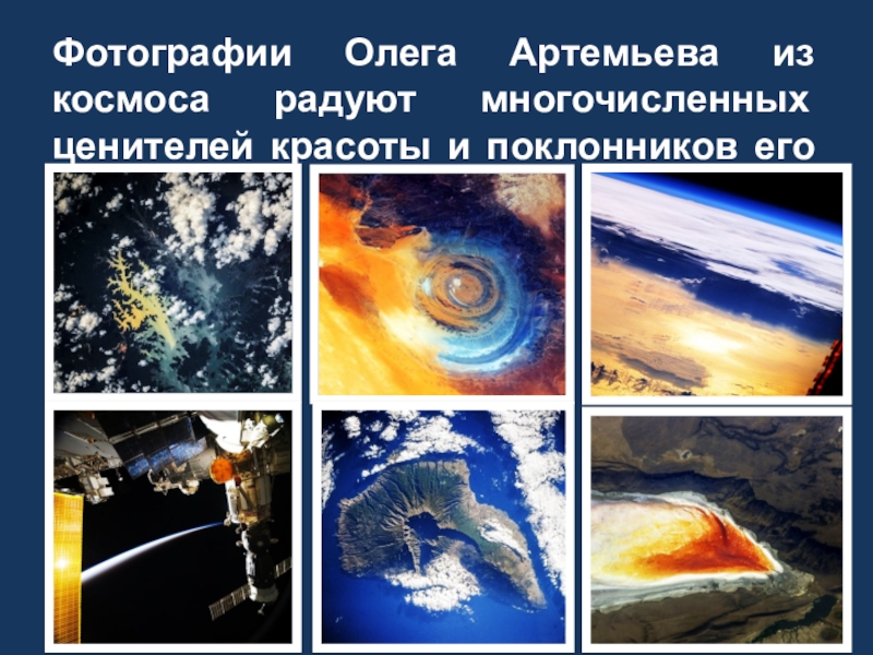 Слайд 11Фотографии Олега Артемьева из космоса радуют многочисленных ценителей красоты и поклонников