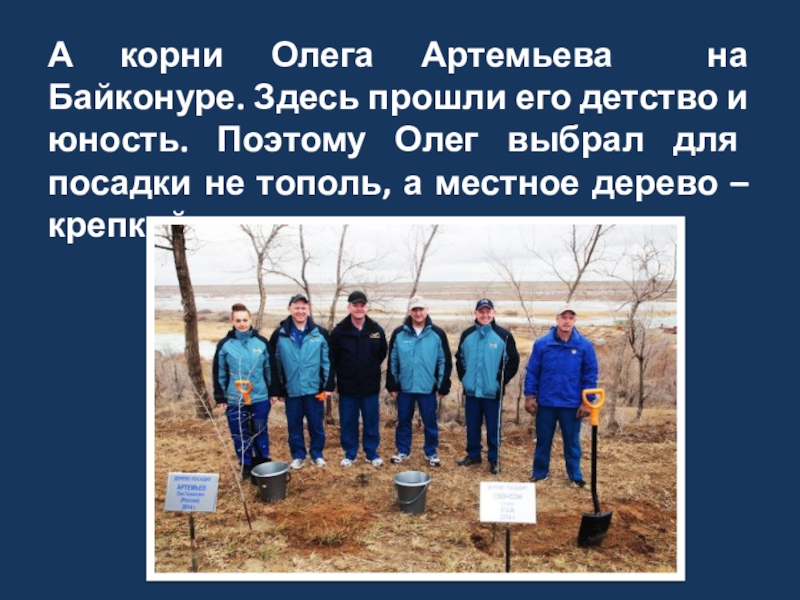 Слайд 19А корни Олега Артемьева на Байконуре. Здесь прошли его детство и