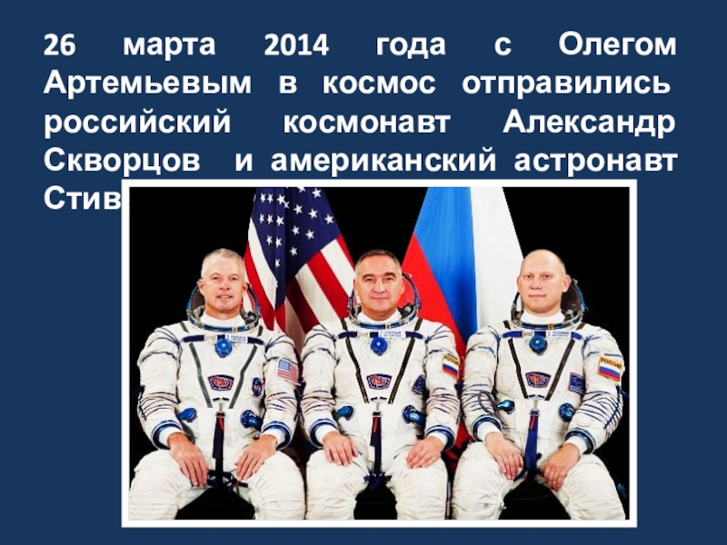 Слайд 626 марта 2014 года с Олегом Артемьевым в космос отправились российский