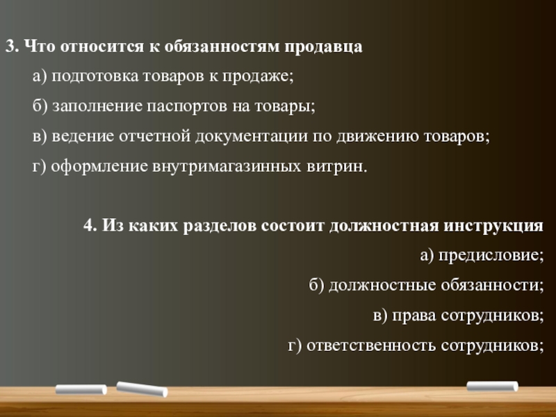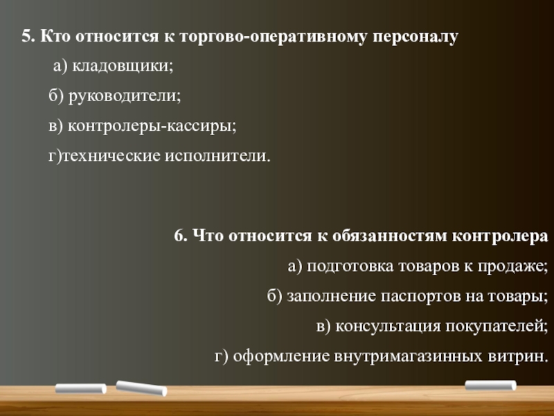 6. Что относится к обязанностям контролера