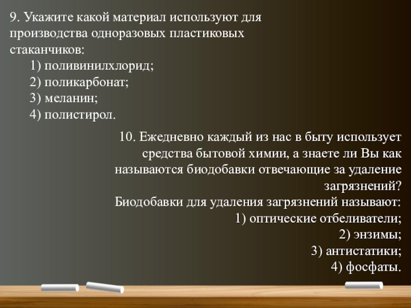 10. Ежедневно каждый из нас в быту использует средства бытовой химии, а знаете ли Вы как называются биодобавки отвечающие за удаление загрязнений?