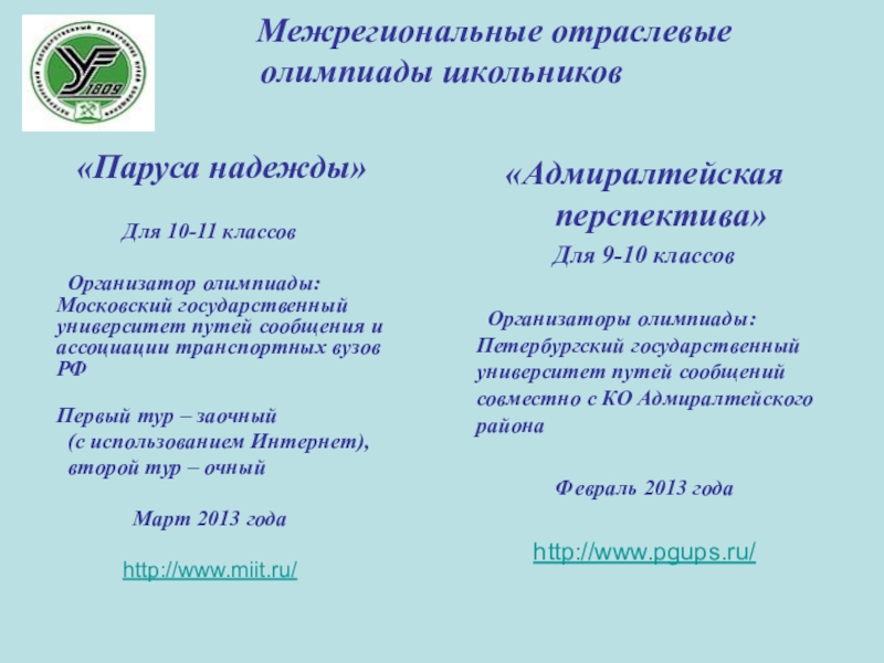 Организатор олимпиады: Московский государственный университет путей сообщения и ассоциации транспортных вузов РФ