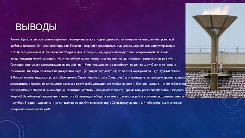 работы гипотезу. Олимпийские игры с их богатой историей и традициями, с их широким размахом и популярностью