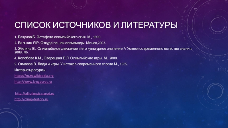 1. Базунов Б. Эстафета олимпийского огня. М., 1990.