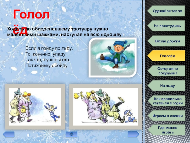 Ходить по обледеневшему тротуару нужно маленькими шажками, наступая на всю подошву
