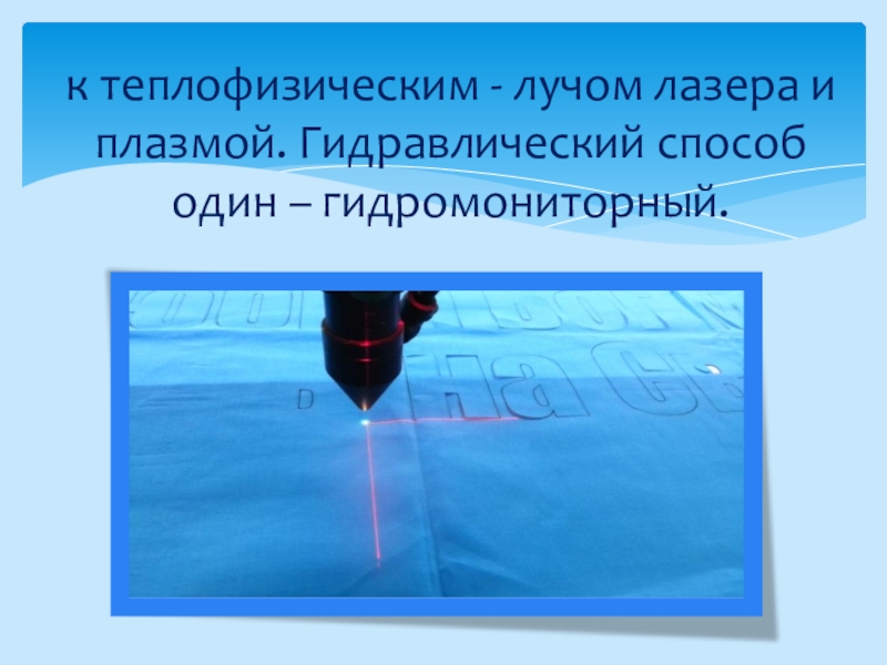 Слайд 30к теплофизическим - лучом лазера и плазмой. Гидравлический способ один –
