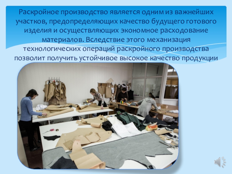 Слайд 11Раскройное производство является одним из важнейших участков, предопределяющих качество будущего готового