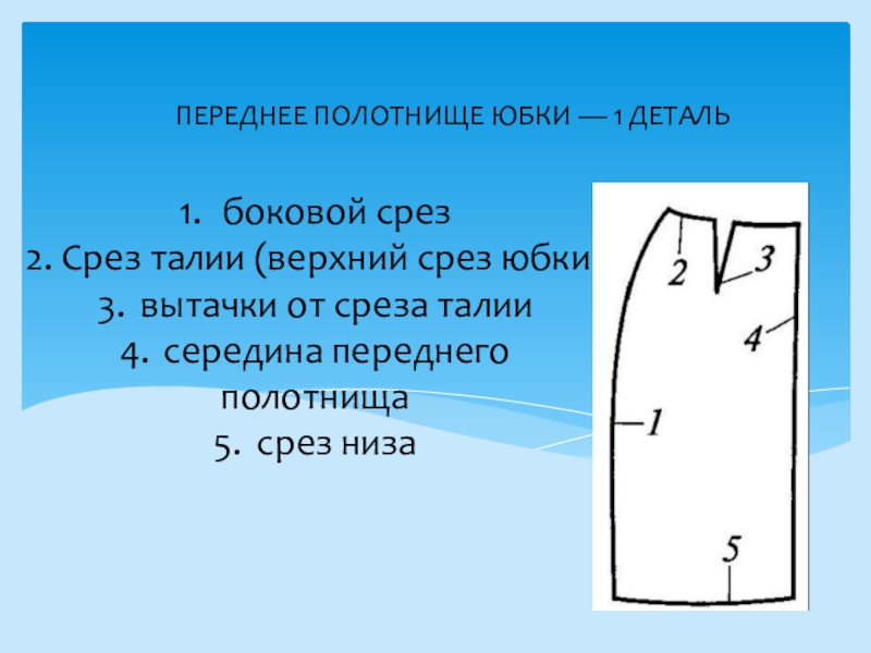 ПЕРЕДНЕЕ ПОЛОТНИЩЕ ЮБКИ — 1 ДЕТАЛЬ