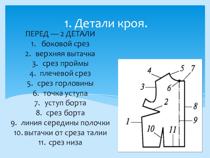 Слайд 71. Середина заднего полотнища (сгиб или срез заднего полотнища)